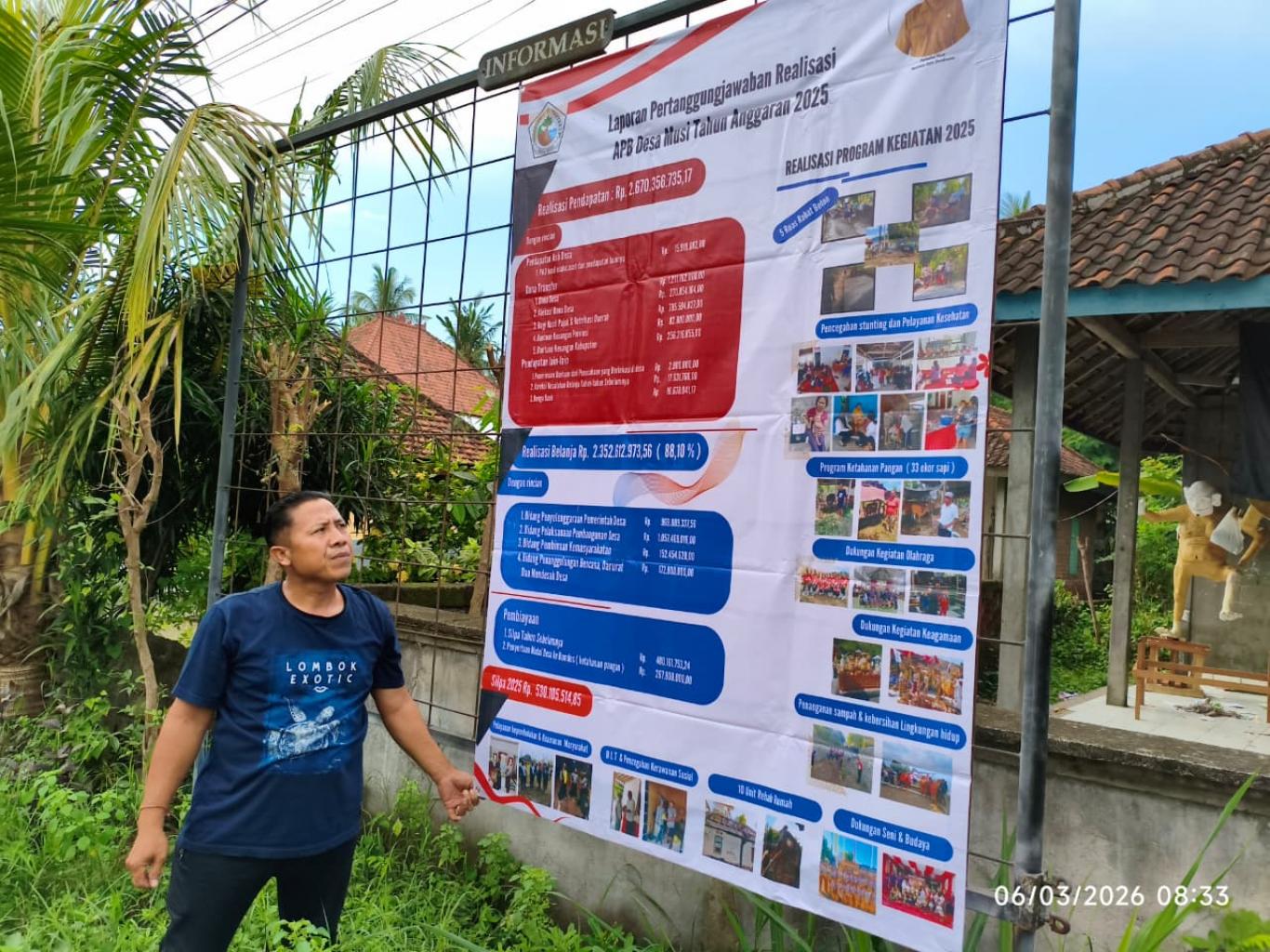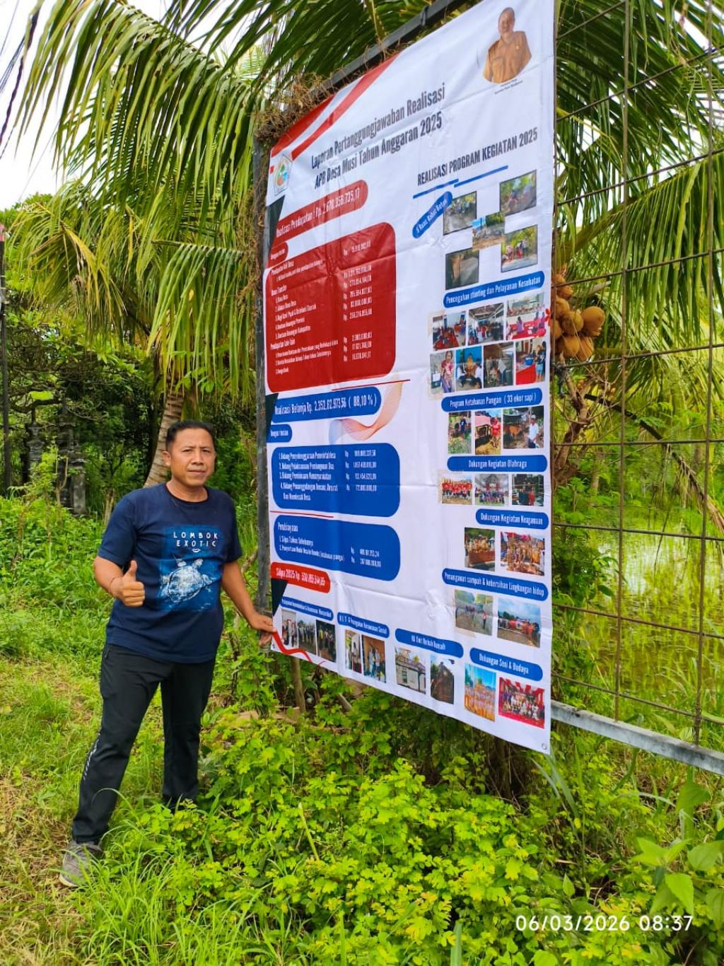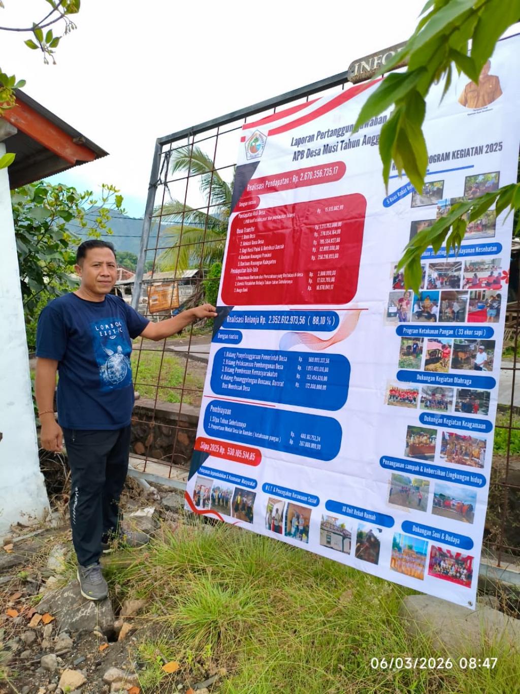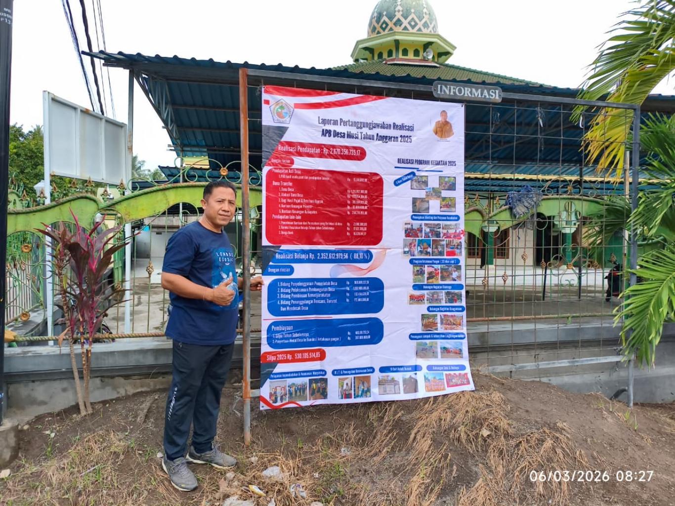 Pemerintah Desa Musi melaksanakan pemasangan baliho atau spanduk Laporan Pertanggungjawaban Realisasi Anggaran Pendapatan dan Belanja Desa (APBDes) Tahun Anggaran 2026 sebagai bentuk transparansi dan akuntabilitas kepada masyarakat desa.